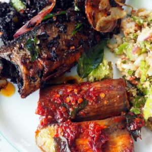 Na obed ideme rovno na nábrežie. Pre zmenu si chceme navoliť niečo z bufetu. Domáca nám radí, tak sa dostávame ku grilovanej rybe, pikantnému baklažánu, čomusi zelenenému šalátovému. A samozrejme – veľa ryže. Z tej ryže nakoniec aj nechám, lebo chcem už konečne testnúť aj niečo indického. Nedávame si ani kokos a trielime do Malej Indie.