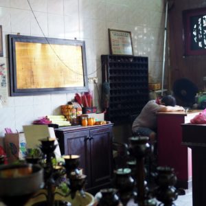 Obzrieme si ešte parádne zreštaurovaný čínsky chrám neďaleko od hotela a celí premočení zdrháme do sprchy. Potom nasleduje poobedný zákvas v klíme – práca a čakanie na slabšie slnko.
