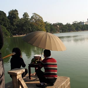 Pokračujeme dnes v našej Tour de Hanoi. Vyrazíme smer jazierko, je krásne snečne, tak sa rozhodneme vybehnúť do kaviarne na 5tom poschodí nad jazerom. K si vo výťahu pomýli chápka v uniforme s obsluhou výťahu. Keď zbadám, že chlapík má na uniforme napísané Korean Airlines, je mi dosť jasné, že došlo k nedorozumeniu. Nie len, že chlapík nevozí ľudí výťahom (skôr lietkami), on zrejme ani nie je z tejto krajiny. Situáciu K zachraňuje vynájdením sa. Poďakuje a maníkovi za stlačenie pochodia po kórejsky. Medzinárodná kríza je zažehnaná.