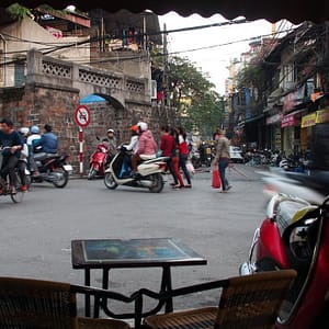 Nad ránom začína byť zima aj cez tri deky, ale nedá a nič moc robiť. Samozrejme v momente, keď sa mi zdá, že spím nalepšie za celú noc sme zrazu v Hanoi a musíme ráno 07:00 vystupovať do strašnej zimy. Je tam kopec otravov a my sme pekne primrznutí. Nenecháme sa ale rozmraziť a v kľude sa ponakladáme, pozapíname vetrovky, ktoré sme žiaľ nemali so sebou v autobuse (to sa už nebude opakovať). Zisťujem na navigácii, že sme 1.2km od hotelovej štvrti, tak sa k nám pridávajú traja študenti zo Singaporu. Keďže bez pohybu nevieme poriadne určiť smer, pýtame sa ohrdnutých taxikárov a vyrážame kam nám ukážu. Strácam signál, ale začínam mať silnejúci pocit, že ideme naopak. Zaševelím to na K, tá sa ale rozohrieva debatovaním s babami a s vidinou hotela trieli v ústrety teplej izby. Keď sa moje obavy potvrdia, úspešne zahatám celú výpravu a následných 5 minút sa vraciame na stanicu. Potom je to zase 1.2km pomerne priamočiaro. Ideme cez rušné mesto, všade to žije – domácimi. Domáci nakupujú v už otvorených obchodíkoch, vysedávajú vo francúzsky vyzerajúcich kaviarňach. Keď prídeme do turistickej štvrte, tam je ešte skoro všetko zavreté, sem tam otvárajú nejaký obchod, sem tam nejaký biely turista. Predsa len je pre turistou priskoro a tí nezbedníci vonku sú buď strašne hladní, alebo im bola zima na izbe (to pochopíme, hneď ako sa ubytujeme). Odprevadíme trojku bielych študákov až pred ich hostel. To vyzerá byť riadne populárne miesto, napriek skorej rannej hodine to v loby a pred hostelom vrie ako úli. Rozhodneme sa ísť zmobilizovať sily na kávu. Ceny sú tu všade turistické – 20000D za kávu s mliekom. Kde je naša plážová cena 12000D?