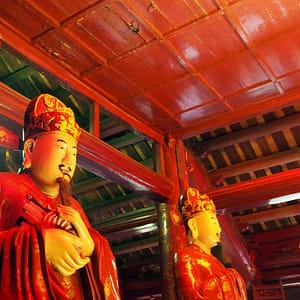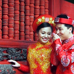 Francúzku nechávame na teraske a ideme na prechádzku. Obehneme jazero, pokúšame sa nájsť nejaký supermarket na jedlo, ale objavíme len butikový megamarket. Jeme v Pho 24, čo je predražené polievkovníctvo. Nie sme z toho nadšení, ale nevieme takto nalačno nič nájsť. Vyrazíme smer Ho Chi Minhove mauzóleum. Zastavujeme na dobré ale turistické (cenovo) kafé. Čaj zase nezariešime. Mauzoléum je žiaľ zatvorené, podľa knižky, ho zatvárajú 10.30.Je ale možné, že je Ho Chi Minh na každoročnej 2 mesačnej kúree v Moskve. Prechádzame sa v záhradkách okolo. Mauzoléum vyzerá ako náš Slavín, len mu chýba anténka na vrchu. Je to trošku úlet, akoby Slavín ufikli z BA. Naokolo sú na trávnikoch zelené exteriérové reproduktory a hrajú nejaké socialistické šlágre. V chráme pred múzeom spieva mních, tak s ním chvíľu meditujeme. Je už dosť hodín, tak sa svižne presúvame do pavilónu literatúry. Ten sa nám moc páči, i keď zeleň je trochu poslabšia. Je už zima, sme hladní, tak aspoň hydratujeme kolou a kukáme ako sa fotí svadba. Nevesta i ženích sú v parádnych červených krojoch, vyzerajú, že sú už dosť vyfotení. Slnko zapadlo, zima sa prehlbujeme, ideme niečo zajesť a dom. Pri východe z kompexu sme narazili opäť na nevestu, tentokrát sa prezliekala do štandarných bielych šiat, ešte že si zobrala teplú podprsenku (tá z diaľky ale nebola vidno). Prebehol nám mráz po chrbte. Brrrr. Nevieme nájsť jedenie, tak alternatívne zapadneme v podniku s čapovaným pivom. Uhľohydráty treba. Jedlo je ale drahé. Popíjame a sledujeme ako cez ulicu chlapík tréhuje pitbula. Necháva ho vyskakovať na gumu zavesenú na lampe a chudák pes trhá a trhá ako ťupík. Pýtal som sa pri objednávke, že či stojí 5 prstov (5000D ako u nás na uličke) – mladá povedala, že hey. Pri platení za dve už ale chcel beťár 14000D. To sa mi nepáčilo, povedal som mu po anglicky, že sme sa dohodli na 5 za pivko , dal mu 10tis a išli sme vedľa na polievku, čo som ja síce videl, ale K nie. V polievkovníctve je jeden človek, objednáme si niečo z menu na tabuli s uvedenými cenami (35000D) a keď prídu dvaja domáci, objednajú si polievočku a pani im tam seká čerstvé hovädzie mäso tak si objednám posunkami, že chcem to čo oni. Donesú nám kopec ryže a fajné mleté mäsko so zeleninou a potom aj tú polievočku. Neviem tam identifikovať to sekané mäsko, buď sa uvarilo v horúcom vývare alebo mi ho tam nedala. Ale je to fajn a pri ceste na WC ešte dostanem jackfruit a pri ceste von ďaľšie dve. Úplne nafutrovaní ideme ešte do čajovne, ktorú nám ospevovala Francúzka na terase. Je už tma a pri vchode svietia lampióny ako do nevestinca. Objednali sme si čajník lotosového čaju. Vyzutí sedíme na rohožiach na zemi pri nízkom stolíku. Donesú čajníček, pohárčeky a chapík z termosky ceremoniálne zalieva prvý nálev. Ten zleje do premytých pohárikoch a naleje ho naspäť. Potom nám konečne naleje a ide preč. Je to riadna šupa. Niečo ako super silná šalvia. Objednali sme si po jednej z dvoch rôznych sladkostí. Doniesli nám dva tanieriky s piatimi kusmi z každej. Okoštujeme oboje, koláčiky zo zelených fazuliek sú fajn, tak si na plné brucho dáme ešte jeden. Pri platení nám rátaju 10 sladkostí, ale zkorigujeme to a všetko je fajn. Uháňame cez mesto a silne nám to obom pripomína úprky cez Paríž, kde sme sa často ponáhľali od Luxemburských záhrad do Marais. Zastavíme sa ešte v markete (ani super ani mini) nakúpiť nejaké alkoholické nápoje a proviant na plánovaný výlet loďou. Odložili sme si obal z koláčika zo zelených fazuliek a kupujeme dva iné modely. Po hodine sme uťahaní na hoteli a pokúšame sa zabookovať plavbu Dračou zátokou (Halong Bay). Vedúca tam už nie je, recepčný nerozumie, ale akurát mu zavolá šéfka a on nám ju dá k telefónu. Berieme najlacnejšie možnosť ($40 na hlavu za dva dni a jednu noc) i keď sme videli aj ponuku za $37, ale rozhodneme sa pre biznis s domácim hotelom (a všade varujú nebrať to najlacnejšie). V posteli na internete otvárame fľašu francúzskeho červeného a čakáme, či sa k nám bude zase niekto dobíjať. Treba ešte dotiahnúť nejaké pracovné záležitoti, tak využívame net naplno.