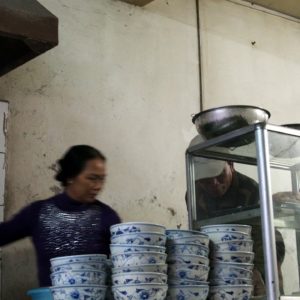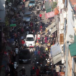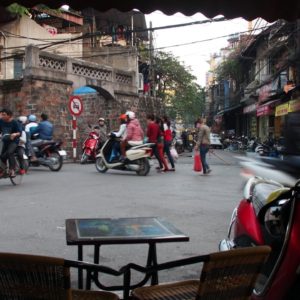 Nad ránom začína byť zima aj cez tri deky, ale nedá a nič moc robiť. Samozrejme v momente, keď sa mi zdá, že spím nalepšie za celú noc sme zrazu v Hanoi a musíme ráno 07:00 vystupovať do strašnej zimy. Je tam kopec otravov a my sme pekne primrznutí. Nenecháme sa ale rozmraziť a v kľude sa ponakladáme, pozapíname vetrovky, ktoré sme žiaľ nemali so sebou v autobuse (to sa už nebude opakovať). Zisťujem na navigácii, že sme 1.2km od hotelovej štvrti, tak sa k nám pridávajú traja študenti zo Singaporu. Keďže bez pohybu nevieme poriadne určiť smer, pýtame sa ohrdnutých taxikárov a vyrážame kam nám ukážu. Strácam signál, ale začínam mať silnejúci pocit, že ideme naopak. Zaševelím to na K, tá sa ale rozohrieva debatovaním s babami a s vidinou hotela trieli v ústrety teplej izby. Keď sa moje obavy potvrdia, úspešne zahatám celú výpravu a následných 5 minút sa vraciame na stanicu. Potom je to zase 1.2km pomerne priamočiaro. Ideme cez rušné mesto, všade to žije – domácimi. Domáci nakupujú v už otvorených obchodíkoch, vysedávajú vo francúzsky vyzerajúcich kaviarňach. Keď prídeme do turistickej štvrte, tam je ešte skoro všetko zavreté, sem tam otvárajú nejaký obchod, sem tam nejaký biely turista. Predsa len je pre turistou priskoro a tí nezbedníci vonku sú buď strašne hladní, alebo im bola zima na izbe (to pochopíme, hneď ako sa ubytujeme). Odprevadíme trojku bielych študákov až pred ich hostel. To vyzerá byť riadne populárne miesto, napriek skorej rannej hodine to v loby a pred hostelom vrie ako úli. Rozhodneme sa ísť zmobilizovať sily na kávu. Ceny sú tu všade turistické – 20000D za kávu s mliekom. Kde je naša plážová cena 12000D?