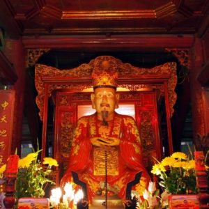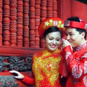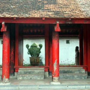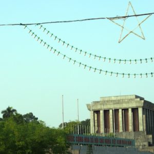 Francúzku nechávame na teraske a ideme na prechádzku. Obehneme jazero, pokúšame sa nájsť nejaký supermarket na jedlo, ale objavíme len butikový megamarket. Jeme v Pho 24, čo je predražené polievkovníctvo. Nie sme z toho nadšení, ale nevieme takto nalačno nič nájsť. Vyrazíme smer Ho Chi Minhove mauzóleum. Zastavujeme na dobré ale turistické (cenovo) kafé. Čaj zase nezariešime. Mauzoléum je žiaľ zatvorené, podľa knižky, ho zatvárajú 10.30.Je ale možné, že je Ho Chi Minh na každoročnej 2 mesačnej kúree v Moskve. Prechádzame sa v záhradkách okolo. Mauzoléum vyzerá ako náš Slavín, len mu chýba anténka na vrchu. Je to trošku úlet, akoby Slavín ufikli z BA. Naokolo sú na trávnikoch zelené exteriérové reproduktory a hrajú nejaké socialistické šlágre. V chráme pred múzeom spieva mních, tak s ním chvíľu meditujeme. Je už dosť hodín, tak sa svižne presúvame do pavilónu literatúry. Ten sa nám moc páči, i keď zeleň je trochu poslabšia. Je už zima, sme hladní, tak aspoň hydratujeme kolou a kukáme ako sa fotí svadba. Nevesta i ženích sú v parádnych červených krojoch, vyzerajú, že sú už dosť vyfotení. Slnko zapadlo, zima sa prehlbujeme, ideme niečo zajesť a dom. Pri východe z kompexu sme narazili opäť na nevestu, tentokrát sa prezliekala do štandarných bielych šiat, ešte že si zobrala teplú podprsenku (tá z diaľky ale nebola vidno). Prebehol nám mráz po chrbte. Brrrr. Nevieme nájsť jedenie, tak alternatívne zapadneme v podniku s čapovaným pivom. Uhľohydráty treba. Jedlo je ale drahé. Popíjame a sledujeme ako cez ulicu chlapík tréhuje pitbula. Necháva ho vyskakovať na gumu zavesenú na lampe a chudák pes trhá a trhá ako ťupík. Pýtal som sa pri objednávke, že či stojí 5 prstov (5000D ako u nás na uličke) – mladá povedala, že hey. Pri platení za dve už ale chcel beťár 14000D. To sa mi nepáčilo, povedal som mu po anglicky, že sme sa dohodli na 5 za pivko , dal mu 10tis a išli sme vedľa na polievku, čo som ja síce videl, ale K nie. V polievkovníctve je jeden človek, objednáme si niečo z menu na tabuli s uvedenými cenami (35000D) a keď prídu dvaja domáci, objednajú si polievočku a pani im tam seká čerstvé hovädzie mäso tak si objednám posunkami, že chcem to čo oni. Donesú nám kopec ryže a fajné mleté mäsko so zeleninou a potom aj tú polievočku. Neviem tam identifikovať to sekané mäsko, buď sa uvarilo v horúcom vývare alebo mi ho tam nedala. Ale je to fajn a pri ceste na WC ešte dostanem jackfruit a pri ceste von ďaľšie dve. Úplne nafutrovaní ideme ešte do čajovne, ktorú nám ospevovala Francúzka na terase. Je už tma a pri vchode svietia lampióny ako do nevestinca. Objednali sme si čajník lotosového čaju. Vyzutí sedíme na rohožiach na zemi pri nízkom stolíku. Donesú čajníček, pohárčeky a chapík z termosky ceremoniálne zalieva prvý nálev. Ten zleje do premytých pohárikoch a naleje ho naspäť. Potom nám konečne naleje a ide preč. Je to riadna šupa. Niečo ako super silná šalvia. Objednali sme si po jednej z dvoch rôznych sladkostí. Doniesli nám dva tanieriky s piatimi kusmi z každej. Okoštujeme oboje, koláčiky zo zelených fazuliek sú fajn, tak si na plné brucho dáme ešte jeden. Pri platení nám rátaju 10 sladkostí, ale zkorigujeme to a všetko je fajn. Uháňame cez mesto a silne nám to obom pripomína úprky cez Paríž, kde sme sa často ponáhľali od Luxemburských záhrad do Marais. Zastavíme sa ešte v markete (ani super ani mini) nakúpiť nejaké alkoholické nápoje a proviant na plánovaný výlet loďou. Odložili sme si obal z koláčika zo zelených fazuliek a kupujeme dva iné modely. Po hodine sme uťahaní na hoteli a pokúšame sa zabookovať plavbu Dračou zátokou (Halong Bay). Vedúca tam už nie je, recepčný nerozumie, ale akurát mu zavolá šéfka a on nám ju dá k telefónu. Berieme najlacnejšie možnosť ($40 na hlavu za dva dni a jednu noc) i keď sme videli aj ponuku za $37, ale rozhodneme sa pre biznis s domácim hotelom (a všade varujú nebrať to najlacnejšie). V posteli na internete otvárame fľašu francúzskeho červeného a čakáme, či sa k nám bude zase niekto dobíjať. Treba ešte dotiahnúť nejaké pracovné záležitoti, tak využívame net naplno.