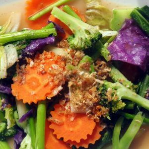Na ranný beh sme si nenastavili budík a tak to aj dopadlo. Celé doobedie sa ani nikam nevymoceme, pracujeme a obed si dávame na uličke kde včera. Dve polievčičky u babky v stánku kúsok pred včerajším miestom. Vybrali sme si rôzne cestovinky. K nechcela mäso, tak dostala kopec malinkých, asik 1cm dlhých krevetiek. Pochutíme si a dorazíme sa kokosovo ryžovými buchtičkami. Tie sú tvorené dvoma polkami opekanými vo formách. V strede je to ešte tekuté. Viac mi chutia, keď sú už chladné.