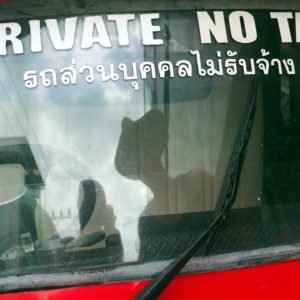 Máme skorý budík. Chceme ofajčiť systém a ísť na najbližšiu možnú zastávku busu na južnú stanicu. Samozrejme, že skončíme 20minútovou prechádzkou po výpeku, kým nájdeme zastávku. Ideme dokonca až mostom cez rieku. V Thajsku každý rád poradí a dostaneme zakaždým inú odpoveď. Samozrejme, že cestou nie je žiaden bankomat. Ale na stanici – ak sa tam vôbec niekedy dostaneme – snáď nejaký bude. Za mostom, ešte tak 5 minút peši je veľká zastávka a aj náš bus je tam napísaný. Po chvíli prihrmí a my platíme závratných 9B na hlavu za asi 15 min jazdy. Stanica je mega veľká, čistá s obchodíkmi. Hneď prvý mikrobus vykrikuje našu destináciu, no my čekujeme aj ostatné, či nie sú náhodou lacnejšie. Nie sú. Aj asi 5ty minibus ide tam, kam my, a stojí takisto 180B. Vraj vyrazí o 10:00. no šak uvidíme. Pre istotu sa ideme naraňajkovať – ryža s dvoma prílohami. Je to super mleté mäsko a morning glory, nejaká zelená rastlina. Kúpime si ešte vodu a kým nájdem na treťom poschodí megastanice WC už na mňa minibus čaká.