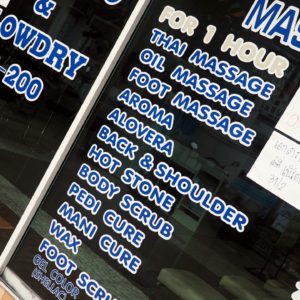 Konečne si doprajeme thajskú masáž v podniku Thai Thai. Je to úplne iné ako predtým. Nevieme prísť na to, prečo sme si dávali chrbát a nie thajskú masáž. Nohy na začiatku nám umývajú v lavóriku s citrónmi a dostaneme aj „pyžamo“ na prezlečenie. Je to super, hlavne sa mi páči masírovanie nôh, i keď lakte v stehnách mi tlačia slzičky do očí. A nie od radosti. Vedúca, ktorá masírovala K sa nás síce snaží dokopať na 20minútovú pedi, ale ja som hladný a nemám záujem.