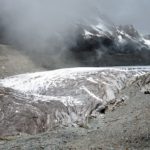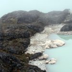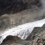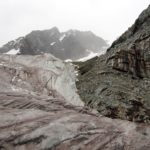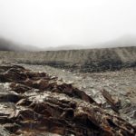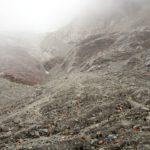 Po obede sme sa vybrali trochu sa vyprdieť. Samozrejme hlavným cieľom bola aklimatizácia a tréning lezenia po ľadovci, nie preprdkávanie práve zjedeného obeda. Fučíme hore kopcom, naložení výstrojou a ako bokovku robíme vyššie spomenutú činnosť. Ešte že fúka ostrý vetrík. Po asi hodinke zbadáme pred sebou od kamenného prachu špinavý koniec ľadovca.
