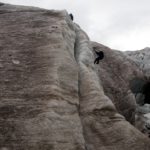 Nežartovali. Ešte šťastie, že mi dovolili rapelovať. To mi moc nešlo, lebo som sa sústreďoval, aby som si nesekol čakanmi do oka alebo líca. Keď som sa už celkom pekne rozbiehal a dosahoval kolmicu na stenu, utrhol sa mi popruh pod ľavým zadkom a ja som sa tak zúfalo chytil lana, že som si skoro zaťal oba krompáče do xichtu. Veľa nechýbalo. Začalo to byť celkom adrenalínové. A ešte sa mi aj zdalo, že mi povoľuje popruh za pravým zadkom. Tak som len ten zadok pekne stisol, chytil sa lana ako kliešť a pokúšal sa zísť dole čo najrýchlejšie bez toho aby som si spravil piercing na tvári.