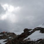 Kus cesty ideme rovnako ako včera, potom zahneme doprava a stúpame ku verejnej chate v 5130mnm. Tam to riadne smrdí nepodarenými záchodmi, tak sa tam moc nezdržiavame. Naša chata je o 200metrov vyššie, už ju aj vidno. Začínajú snehové polia. Haluška sú čajky z Titicacy, že si tu lietajú a kvákajú, ako keby sme boli niekde pri mori a nie 5000metrov nad morom. Nad verejnou chatou sa partička bláznivých Bolívijcov vytešuje na snehu. Najprv som si myslel, že trénujú lezenie, ale mali toľko výskotu a radosti, že sme ich dali ako turistov. Nakoniec sa začnú hromadne šúchať po zadku po snehu. Zlepšilo nám to náladu, ale vzduch je stále riedky. Tých dvesto metrov od verejnej chaty, kde sa práve vyšiel nadýchať Čilák zo včera, nám trvá hodinu.