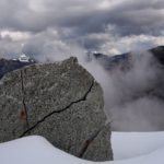 Postupne nás predbehnú dve skupinky a začne sa aj rozvidnievať. Ale aj tak prd vidno, lebo je hmla a jemne sneží. Dvíha sa aj vietor a omŕza mi tvár. Srieň mám aj na okuliaroch a na šnúrkach od cepína.