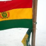 Nakoniec sme to dokázali. Cesta končí tri metre nad Bolívijskou vlajkou. Kopec je pod nami, mi sme na pár metrovej vrstve snehu na ňom. Druhá fľaša vody sa síce ešte dá piť, ale plávajú v nej už kryštále ľadu. Ani čokoláda sa nedá jesť. Nemá v tej zime žiadnu chuť. Dáme si dva kexíčky, natiahnem si páperku, odfotíme sa a už nás Mário ženie dole, že aby nám náhodou nezafúkalo cestu. Skúšame ešte fotiť, no zamrznutý foťák ani nevie zaostriť. Iba pizúka a ja aj tak na ňom nič nevidím. Dole ideme poslední. Dole kopcom je to ľahšie, ale strmina je tam stále. Idem prvý a držím lano v ruke, aby som Katku nepotiahol, keď v tom sa jej zrazu šmykne, ja sa otočím a vidím ju robiť dosť nepekné salto dole kopcom. Takto za svetla vyzerá celá cesta oveľa nebezpečnejšie. Našťastie ju Mário zachytí. Ja by som ju v ruke asi neudržal. Chvíľu jej trvá, kým sa štvornožky vyštvrá späť na chodník. Z času načas dobehneme Čilana, čo s nami trénoval na ľadovci. Ten nás síce cestou hore predbehol, ale cestou dole vyzerá, že melie z posledného. Na niektorých zastávkach iba tak sedí, ako keby spal. Katka do neho napchá jeden kokový cukrík.
