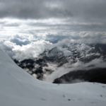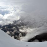 Mário je teraz už skutočne nasrdený a chce to otočiť pár minút pod vrcholom. Je dosť možné, že by som ich oboch dokázal strhnúť dole. Nakoniec dostanem len poslednú výstrahu. Beriem si to k srdcu a zapichávam cepín až po vrch, čo zvieram v hrsti. Úplne mi z toho omŕza ruka. Šmýkanie a extrémne zapichávanie cepína mi berie veľa energie, ešte ma aj sere lano, ktoré sa mi motá popod nohy, takže ani moc nestíham za Katkou.