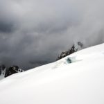 Dostávame sa do strmého svahu, ktorý traverzujeme po úzkom chodníku vyšlapanom v sypkom snehu. Dosť zle sa mi ide, šmýkam sa späť a občas šlapnem ľavou nohou vedľa a šmyknem sa. Mário z toho nie je nadšený, no neukáže mi, ako to mám robiť. Zrazu sa šmyknem až tak, že sa nezachytím ani pravou nohou ba ani rukou a spomalene letím dole strmou stráňou. Sprievodca za nami kričí na Mária, že zle, no K stihne hodiť lano cez svoj zapichnutý cepín a zastaví tak môj pád.