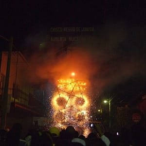 Začne to dekoratívnym odpaľovanním prskavkovitých ohňostrojov nainštalovaných na veľkom kríži čierneho Ježiša, ktoré sú odpaľované asi v piatich vlnách. Niektoré rakety/megaprskavky točia kolesá, niektoré nakoniec búchajú. Dosť efektné. Následne ide regulérny ohňostroj po jednej odpaľovanej rakete (čo je trochu nariedko, bral by som aj 2-3 naraz na oblohe). Väčšinou menšie, z času načas veliká na celú oblohu s pekným viacfarebným finišom. Po hodine nekonečna musíme kvôli hladu predčasne odísť, vyberáme si grilované mäsko v jednom z desiatok identických stánkov s jedlom, naša domáca svorka sa k nám pridáva, dávame si s nimi pivko. Zrazu prestane fungovať káva a my zhasíname ako sviečky. Sme radi, keď Darren zavelí, že sa ide domov. Ledva vydržíme cestu domov, lebo všetci sa ešte zastavujú na pekne hnusne vyzerajúcu kukuricu, čuriská, zemiačky. Spíme ako zarezaní.