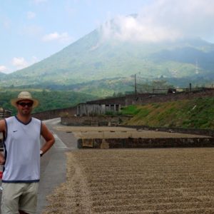 G pracuje, ja si užívam sieť a záhradu. Objednávam nás na coffee tour, čo sa ukáže ako najlepšie investované $. O 13.00 nás vyzdvihne rasta teepek. Je celkom vysoký a európsky vyzerajúci. Trošku pripomína Boba Marleyho alebo speváka z Rage Against The Machine. To už fičíme vyzdvihnúť ďalšie 2 americké babenky, vraciame sa ale späť k nám, po chlapatých rakúskych kolegov, ktorý sa nevedeli vymotať a fičíme v rozkošnej červenej toyotke (Land Cruisier – o rok starší ako my) do fabriky. Je neuveriteľné ako sa do malého autíčka napchalo 7 ľudí. V predu sedíme traja, a domácich by sa ešte asi 7zmestilo. Rasta – Cesar je skvelý, dozvedáme sa všetko možné. Tour sme si predstavovali po kávových plantážach a náležite sme sa vyzbrojili klobúkom a krémom na opaľovanie, ale nakoniec sme skončili v družstevnej fabrike (asi 300 farmárov združených do koopu), ktorá čisitla, sušile a pražila kávu. Bobule zbavili dužiny, osušili teplom z drevených pilín a šupiek z jadra, ošúpali šupky z jadra a predávajú do Európy. Časť menej kvalitnej produkcie končí opražená v supermarkete. Sušia aj priamo bobule so zrnami, to dáva výslednej káve nasladlú chuť, ale zle sa to čistí od zoschnutej šupky a nie je to moc rozšírené. Najlepší je záver, samotná ochutnávka. Cesar nás zoberie do mikropražiarne, lebo v koope je vpražiarni moc veľký hluk. Surovú kávu najprv zhruba 16 minút pražíme (voniame v rôznych fázach procesu), potom melieme, voniame, zalievame vodou, zasa voniame a nakoniec testujeme chuť (srkáme z lyžičky a vypľúvame) a úplne nakoniec aj pijeme, WOW. Končíme v El Cadejo ako včera, mojito je skvelé, a aj riadne zapísalo. Žiaľ, Katka si dala jahodovú margeritu a tá jej moc nezapísala. Debatujem s Cesarom o všeličom možnom (kávovom), Cesar sa nakoniec hecne a ešte nám urobí božské kapucino a kortádu. Darren, náš domáci nás víta s konštatovaním, že sme boli riadne dlho. No, boli a bolo super. Potrebujeme niečo zjesť, z kávy sme naspeedovani, bojíme sa aby nás do ohňostroja neceklo. Jedlo ale nestihneme, lebo zvyšok osadenstva vyčkáva kým vyjdem zo sprchy. Ostávame s davom plného očakávania. Ohňostroj mal začať o 19.00 ale už je skoro 20.00 a nič. Z nekonečného začiatku v tradičnom duchu sa vykľuje najdlhší ohnostroj v našom živote.