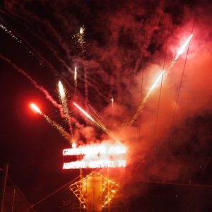 Začne to dekoratívnym odpaľovanním prskavkovitých ohňostrojov nainštalovaných na veľkom kríži čierneho Ježiša, ktoré sú odpaľované asi v piatich vlnách. Niektoré rakety/megaprskavky točia kolesá, niektoré nakoniec búchajú. Dosť efektné. Následne ide regulérny ohňostroj po jednej odpaľovanej rakete (čo je trochu nariedko, bral by som aj 2-3 naraz na oblohe). Väčšinou menšie, z času načas veliká na celú oblohu s pekným viacfarebným finišom. Po hodine nekonečna musíme kvôli hladu predčasne odísť, vyberáme si grilované mäsko v jednom z desiatok identických stánkov s jedlom, naša domáca svorka sa k nám pridáva, dávame si s nimi pivko. Zrazu prestane fungovať káva a my zhasíname ako sviečky. Sme radi, keď Darren zavelí, že sa ide domov. Ledva vydržíme cestu domov, lebo všetci sa ešte zastavujú na pekne hnusne vyzerajúcu kukuricu, čuriská, zemiačky. Spíme ako zarezaní.