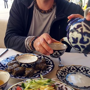 Dávame si plážovovú nedeľu po raňajkách v centre. Na obed skúšame Uzbeckú národnú kuchyňu a večer je konečne pekný gýčový západ slnka.