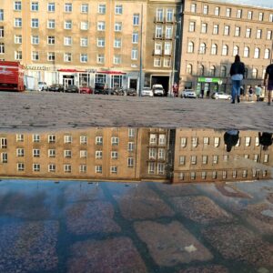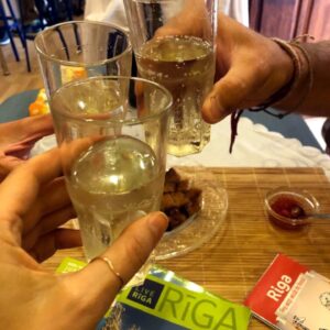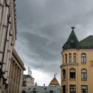 Po raňajkách v bistre 13.8. a nastriekaní reťazí vyrážame do Rigy. Dnes za nami priletí Marika. Cyklo cesta (24km) nie je ktovie ako značená, tak sa nám podarí aj stratiť. Prichádzame ale viac menej zosynchronizovane pred office agentúry prenajímajúcej byty. Bývame v centre centrovitom, na 3 poschodí starobylého domu. Po menúčku vyrážame v už daždi na centrálne trhovisko. Budova trhu sú konvertované hangáre na výrobu vzducholodí z 1SV. Celkom to tu upgrejdli, najmä hangár s food courtom. Kým sa vymotkáme von, už svieti slnko. Obehneme si pár turistických miest, zapadneme na HH pri dóme a nakoniec na večeru do Folkklubs Ala Pagrabs.