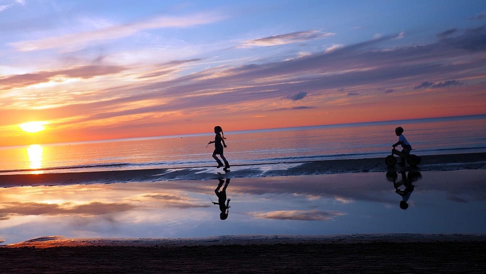 Pláž je pekná, no počasie zlé. Poprchá a tak nie sme moc nadšení. Stále si obliekame a vyzliekame vetrovky. Situácia je neutešená. Nikde ani nemajú žiadne sprchy. Jedinú nájdeme podľa mapy po asi hodine. Tak ju s radosťou využijeme. Taktiež využijeme plážovo centrálne lokalizovaný kiosk, kde majú plechovky piva síce za 1.2EUR, ale aspoň tie fajnovejšie, čo v supermarkete stoja normálne 1.1. Takže dobrá cena. Na večeru si nájdeme bistro, lebo ceny pizze sú tu ešte vyššie ako v južnej amerike. Vôbec nechápem, ako si môžu na pizzi tak ulietať, keď tu majú vlastný fajný syr a aj salámky. Bistro je fajn, skúsime grilovaný baklažán, ružovú polievku a viedeňský rezník zapekaný s rajčinou a syrom. Pointernetujeme, dáme ešte čajíky a ideme na západ.