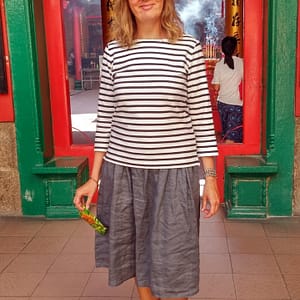 H&M nás dosť sklamalo. Je to tu dosť drahé a niektoré kúsky vyzerajú ako z čínskeho obchodu. K sa celkom vyzúri v Muji, kde majú pekné ľanové veci v akcii a väčšou jej všetko sedí. Ja skúšam ružovú ľanovú košelu, no XLko je malé v pleciach, o rukávoch ani nehovorím. Uniqlo nás dnes moc neosloví. Asi sme už ušhopovaní.