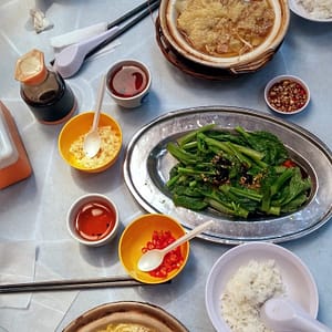 Ideme na istotu do čínskeho podniku „Veľké ústa a rybia hlava“, čo poznáme z prvého pobytu. Malinká od domácich medzi časom narástla a má dnes frajerské nablýskané sandále. Babka si nás aj pamätá. Dáme si jeden clay pot – hlinenú misku vyhriatu na ohni s kusmi bravčoviny vo vývare s tenunkými hubkami a čínskou kapustičkou. Aby to malo grády, dostaneme k tomu aj misky s nasekaným cesnakom a čili. Druhé skúšame otak otak – fašírku z rybieho mäsa. Nie je to zlé, ale na Boerneu sme mali o dosť lepšie.