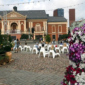 V Klaipéde zaparkujeme pri tržnici a hneď na prvom námestí čapujú pivko. 0.4L za 2.5EUR. Majú tam aj super sedenie a sledujeme ako ozvučújú námestie a nastavujú premietacie plátno.