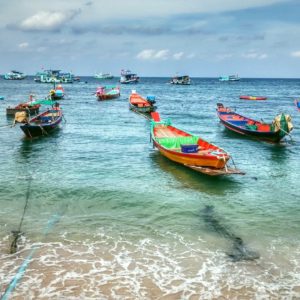Na ostrove Koh Tao vládne panika. Auto, loď a moto taxikári sa prekrikujú s nadháňačmi ubytovania. Snažíme sa cez nich dostať na ulicu. V prvom stánku obloženom plechovkami salka kupujeme thajské frapé (30). Maju kávu filtrovanú cez textilné vrecúška do kovových konvičiek. Z toho odlejú do pohára, dolejú kondenzované mlieko (strihnuté palmovým tukom) a sladené mlieko (salko), vymiešajú a nalejú do plastového pohára plného ľadu. Ideme uličkou, posrkávame kávu a uhýňame sa motorkám. Je to tu dosť divoké. Málokto chodí peši. Skúter za 150B (4.13EUR) na deň je pre bielych nič a príjemne to chladí. Ubytko sa nám moc nedarí nájsť. Všetko sú dosť zlé diery za veľa peňazí. Po ľadovom čaji sa teda pýtame u potápačov, či nemajú tip na ubytko. Tí poskytujú zľavy ba i bezplatné ubytko, ale len keď sa u nich robí kurz. Ten už máme, prišli sme len na fun dive (potápanie pre zábavu). Ale pošlú nás do bočnej uličky, ktorú sme predtým minuli, lebo tam bol dievčenský hotel a K ma tam nechcela zobrať. Pani má v peknej novostavbe ubytko trochu nad náš rozpočet, ale odvedie nás na hlavnú uličku, kde majú slušné ubytko za 450B. Len sme si to nejako na malej tabuľke nevšimli, lebo to vyzeralo hlavne ako cestovka. Konečne ubytovaní sa po sprche ideme najesť do velikej reštiky, kde majú na stole vyložený bufet za 150B na hlavu. Odoláme mäsu a dáme len praženú ryžu za 90. Je to dosť vysoká cena, ale zase porcia je belošská. Kľudne dvakrát taká ako pre domácich. Medzičasom sa podnik zaplní turistami, čo prišli na ostrov na otočku loďou. Je to dosť brutál. Bufet je tu preto, lebo by taký nával nestihli obsluhovať. Po obednej sieste obiehame potápačov a zisťujeme, čo je zajtra na pláne. Ceny sú zvačša 900B za ponor. Dvíha sa vietor, tak nevedia, kam pôjdu. Jedna ukecaná predavačka chce 1000ku za ponor a ešte nám chce privariť 150B na hlavu za obnovenie vedomostí, lebo sme posledne potápali pred skoro rokom na Galapágoch. Ostatným je to viacmenej jedno. Na najväčšiu vychytávku Chumpon ide len strašná domáca predavačka, ale moc jej neveríme. Holandský potápač nás varuje pred takým ponorom na prvý krát. Rozhodneme sa teda pre Holanďanov, zložíme zálohu a zapadneme do pekného podniku na happy hour. Majú parádne klasické a marakuja mochito za 100B. A čo sa dá pokaziť, keď sa držia hesla “nikdy nie je neskoro na kávu a priskoro na drink“. Nuž svätá pravda. Večer sa ešte presunieme na pláž a meditujeme aký je rozdiel medzi týmto tu a Karibikom. Dnes sme zase bez masáže. Nedá sa stíhať všetko.