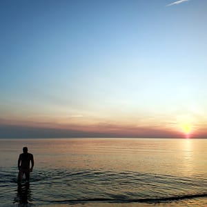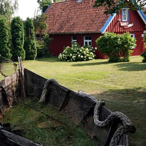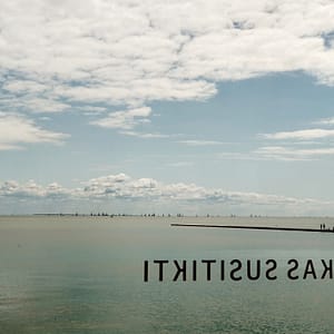 Trajekt späť (1E za oboch) zmeškáme o chlp, tak aspoň vyskúšame solárny wifi stojan integrovaný so samoopravou bicyklov. Z najväčšej lode zo sťažnov revú unifikovane piesne kolumbíjsky námorníci, keď teatrálne odchádzajú z Klaipédy. Večeriame v príjemnej záhradke už na Kose v Smiltyné. Na našu pláž prichádzame na kúpanie v západe. Je stále teplo, na páperky to nevyzerá.