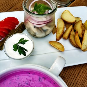 Do hlavného mestečka Kosy – Nida (otočka 62,63km) sa po plážových raňajkách vyberieme posledný júlový deň, 31.07. V lokálnom obchode vykupujú len malé sklenené fľaše, tak so sebou berieme plastové fľaše a plechovky. Prekvapivo dnes po dni oddychu vládzeme jedna radosť. Na kávičke pred Dunou nabíjame telefón cez USB na solárnom wifi stojane s samoobslužnou cyklo opravovňou. Počasie je príjemné. V Nida volíme pre dnešný obed podnik nad zálivom. Na horizonte plávajú plachetnice a keď sa nám lokálna pani prihovorí, že či sme videli krokodíla, vyskočím z lavice, že kde. Vysvitne, ze nepovedala gator, ale regata a že nás upozorňovala na finále plachetníc na obzore. Zeppelíny sú obrovské, hrach so slaninkou správne rozvarený, sleď so smotanou lahodný a v tradičnej studenej polievke z červenej repy pláva konečne aj vajíčko. Dokonca aj pivo je prvý krát nadčapované. Sme nadšení. Dá sa opäť platiť kartou (20,50E).