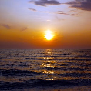 Dnes 04.08. je fakt krásne. Je to náš posledný plný deň na kose. Po domácom obede sa poobede prevezieme klasickým okruhom (10,96km) do Juodkranté. Kaviareň-pekáreň nájdeme prvý krát otvorenú, ostávame tu pracovať do záverečnej 18 hodiny. Večeru berieme v romantickom štýle v našom podniku na dune. K pivu z červenj repy si objednávame štvoricu ustríc a hrniec mušlí. Tá kombinácia smotanovej omáčky s kuriatkami (hubami) na víne je z iného sveta. V zbytku omáčky utopíme hranolky, je z toho delikátna hranolková polievčička.Západ v mrholení mesklame.