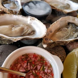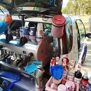 V starom centre na káve zisťujeme o pól štvrtej, že alko sa v nedeľu predáva v supermarkete len do 15h. Náladu nám vylepšia údené chobotničky.