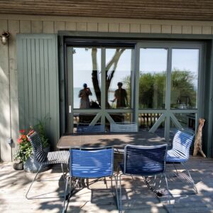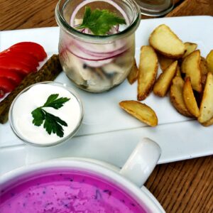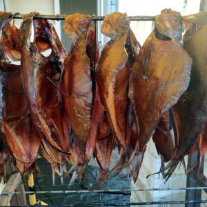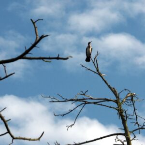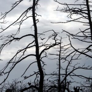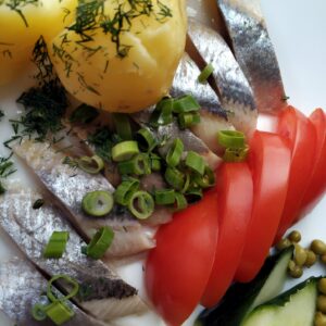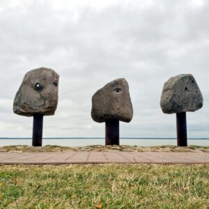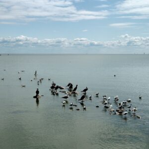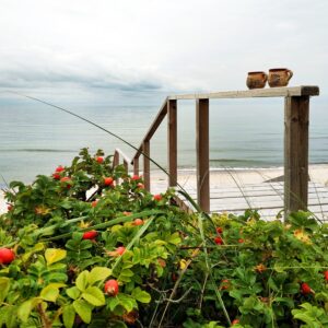Od rána 01.08. visí dážď z ťažkých oblakov za nohy. Podľa predpovede má okolo 14h pršať, tak po plážových aktivitách volíme okruhovú cestu (11km) do Juodkranté. Nový asfaltík spred dvoch rokov začína v cyklo časti chátrať, fakt škoda. Mám dosť vyšľapať kopec cez dunu. Zastavujeme sa na vyhliadke na hniezdisko kormoránov (6500 hniezd), obloha je celkom sivá, ale dáva pekné pozadie hniezdam a ich obyvateľom. U babky kupujeme typickú údenú rybu a v lokálnom minimarkete pod kopcom čarodejníc čierny chlieb a pivo. Piknikujeme s výhľadom na záliv a tesne pred dažďom parkujeme v hipsterskej kaviarni-reštaurácii. Dážď neustáva, tak pracujeme pri káve a vegánskom dezerte až do večere, keď nám čašník ponúkne extra zubáča. Pesto k nemu a aj šalát sú lahodné. Keď príde ešte raz, že má ešte jednu extra rybu, zdá sa mi, že by sme boli prejedení, tak ju na Tvoje sklamanie odmietam rybu s 50 percentnou zľavou. Pozorujeme západ a prvý krát sa dnes večer nekúpeme.