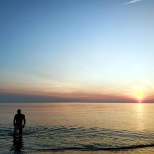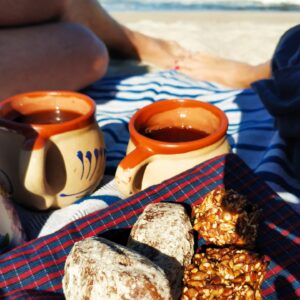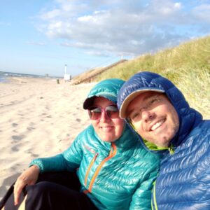 02.08. sa budíme do slnka a po rannej jóge a španielčine vyrážame do Nida (otočka 63,11km). Nejako dnes nevládzem, tak si dávam Juodo (čiernu) kávu na Dune. V Preile si v lokálnej udiarni kupujeme kaviár, samozrejme údený. Zvonka to vyzerá ako údené prepeličky a keď ho zlomíme, vyzerá ako polystyrén. Úplná haluz. Užívame si parádny asfalt až do Nida, dnes sú na horizonte opäť plachetnice. Dnes si veberáme len 3 jedlá, aby sme sa neprejedli ako posledne. Smotanu tu majú fantastickú, hodí sa všade, aj k zemiakovým plackách, aj do rybacej polievky aj k sleďovi. Pri vrátení fliaš stojíme v stále zväčšujúcom sa rade, nejaký plážový podnik vracia v piatok o 16.30 kisty fliaš, ale lokálna turistka mladíkov pošle s prehľadom niekam a máme možnosť ich vrátiť. A Ty si tak šťastný, že kupón neuplatníš pri platení, tak máme 0,80E kupón doteraz. Cestou naspäť nemáme prvý krát silný protivietor. Osviežený večerným kúpaním sledujeme magický západ pri domácom rizote.