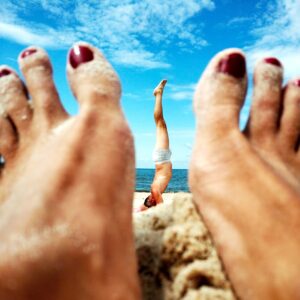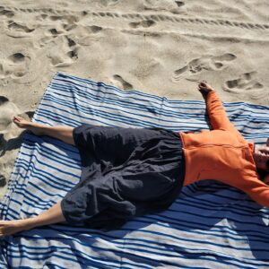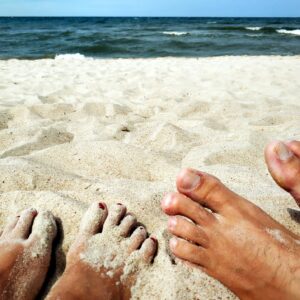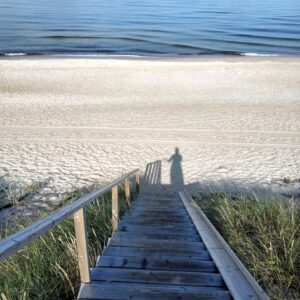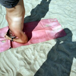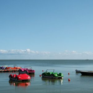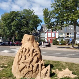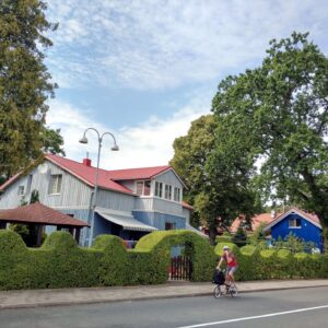 30.07. plážujeme, G cvičí jógu, ja sa učím španielčinu. Pre neskorý obed volíme dnes krátku jazdu (otočka 6,73km) cez kopec do Juodkranté. Je to celkom výšľap, v závere kopca, musím bicykel tlačiť. V najväčšom dedinskom markete, ktorý je silne poznačený socialistickou architektúrou, kupujeme nefiltrované litrové pivo v sklenenej fľaši. Ako si ho vonku na schodíkoch vychutnávame, prihrmí chlápek na elektokolobežke a na malom obrubníčku urobí v plnej rýchlosti salto a rozpleskne sa kúsok od nás. Sme v šoku, on sa ale rýchlo postaví, obzrie drahé hodinky, vbehne s kolobežkou do obchodu a keď o chvíľu výjde už ju len nesie v ruke. Myslím, že jeho kolobežkový čas definitívne vypršal, hádam nebude mať nič zlomené.