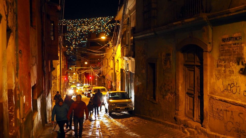 Pizza je dnes zasa zavretá tak ideme na tacos. Dnes skúsim aj sendvič s tenkým plátkom sviečkovej a volským očkom a som nadmieru spokojný. Spláchne to pivko od babky z nášho rohu, kde sa kocháme nočnou nádherou ako La Paz vyniká. Sú to milióny zlatých a modrastých hviezd. Máme to tu radi. Treba ísť ale spať. Zajtra chceme byť čo najskôr na stanici, nech kúpime čo najskorší lístok.