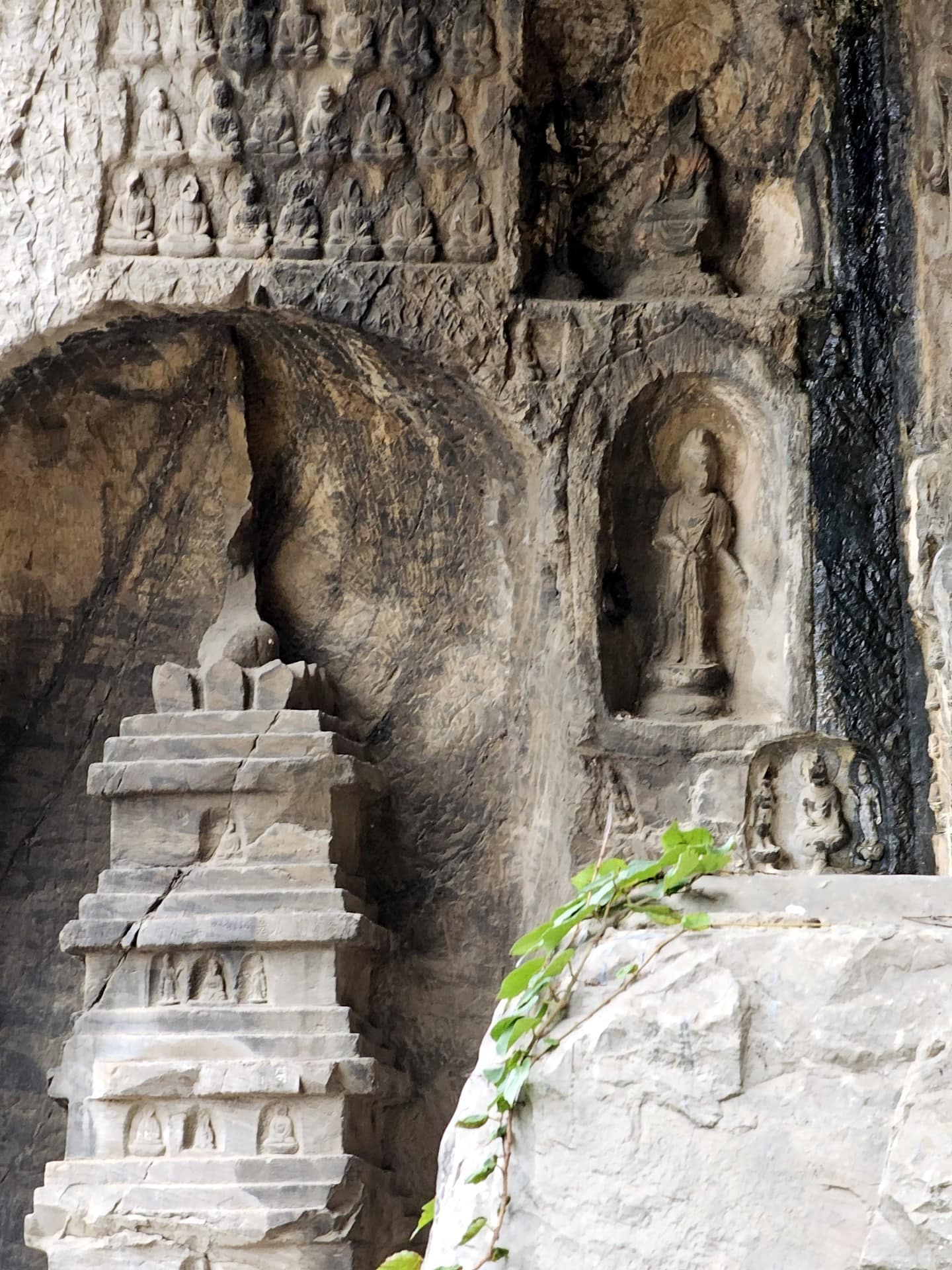 Sochy Budhov sú podobné ako predtým, no sú tu vysekané do serióznejšieho kameňa, ako tie pieskovcove. Detaily sú preto zachovalejšie, i keď strašne veľa Budhov má odbité tváre. Veľa sôch a hláv taktiež skončilo v zbierkach v Európe a USA. Revolúcia potom zvandalizovala veľkú časť zbytku.