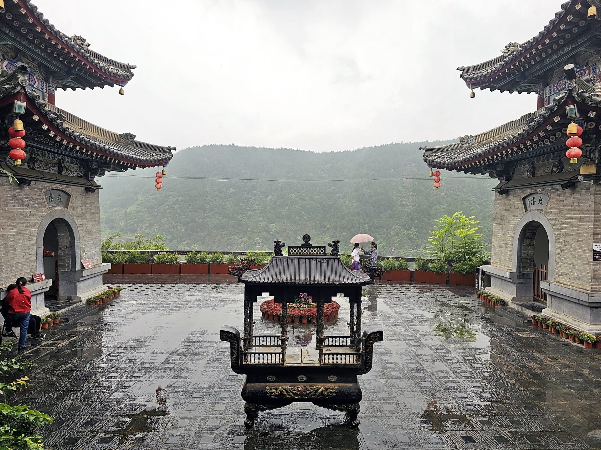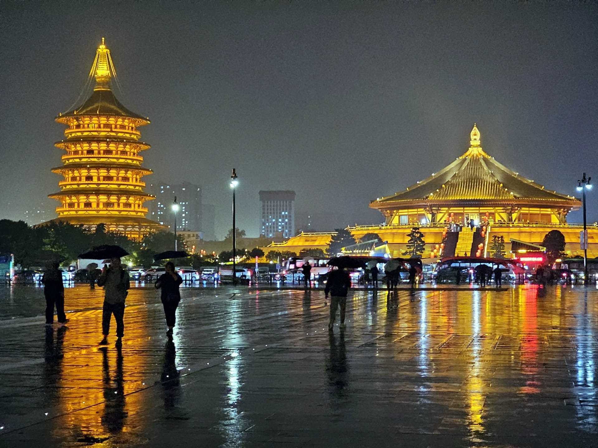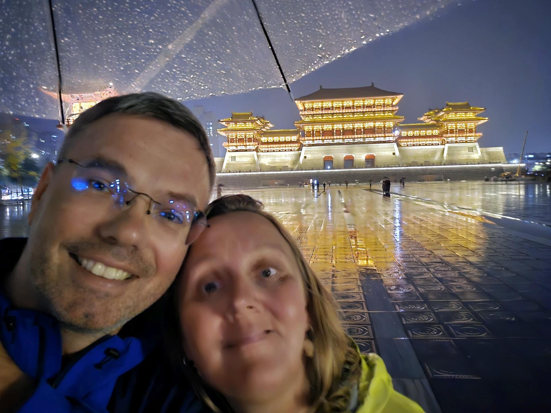 Ideme na neďaleké námestie a dávame si dažďové fotenie. Palácový komplex na námestí vyzerá ako v Thajsku. Potom sa prejdeme na megaveľké čínske burgre, už nám spravia dva. K sa zdá, že pár vyzerá mongolsky. Babka tam má manžela a ten teraz robí brugre. Babka mu len všetko seká. Sú minimálne tak dobre, ako ten obedný. Pán si nás potom natáča na čínsky IG.