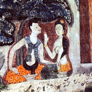Náš peší hon na chrámy pokračuje a dostaneme sa na rázcestie. Naľavo je kráľovský palác s múzeom a napravo kopec so stúpou. Vyberáme zalesnený kopec, lebo keď bude cez obed slnko piecť, lepšie sa schováme v múzeu. Pod kopcom je malý chrámik bez vstupného s jedinečnými freskami. Na schodoch dohora predávajú malé klietočky s vtáčikmi, ktoré ľudia potom navrchu vypúštajú. Platíme vstupné (20000K/hlava). Jedna pani si položila vtáčiky na lavičku pri pokladni a kým sa vyzliekala tak jej doskákali skoro na okraj a išli padnúť. Pribehol som jej ich posunúť naspäť. Ona si to tiež všimla, ale bol som rýchlejší. Na kopci je fajný výhľad, z bočnej cestičky vidno aj obe rieky.