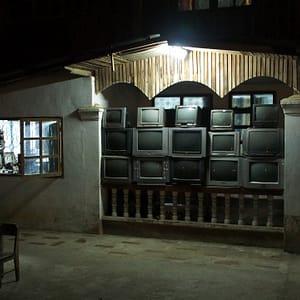 Pýtali sa ľudia (asi tí Austrálčania) na bankomat, no okolo prvého (45km od hraníc) prefrčíme bez mihnutia oka, ja som teda mihol, ale šofér nezastal. Zastaneme ale nejaké dva kilometre ďalej, na konci tej istej dediny na jedlo. Nikto ale nemá prachy, tak to nie je moc veľká sláva. Toto majú busáci trochu nedomyslené. Moc tržby tu nespravia ak nebudú stávať v bankomate. Sme hladní, vaky sú na zadných sedadlách, tak si aspoň spravíme bielkovinu. Závozníkovi hovorím, aby sme zastali pri najbližšom bankomate. Mávam mu pred nosom bankomatovou kartou, aby bolo jasné, čo myslím pod pojmom ATM. Nedá sa nám naštartovať, tak závozník – opravár vyberá spod jedného sedada vercajg, spod K rohože, ktoré vyhodí von oknom. Rozprestrie rohože pod busom a poď ho štartovať. Keď to konečne naskočí pobalí všetko a ide sa ďalej. Cestou zajedáme aj arašidy v kokosovom mlieku a zelené koláčky. Postupne zjeme všetok náš proviant a potom už len držíme vianočný pôst. Krajina je pekná, hornatá. Okolo cesty je strašná chudoba. Decká chodia často holé alebo len v tričku i keď je zima. Niekedy majú bundu a holú riť. Zdanlivo všetko sa odohráva vedľa cesty, deti sa kúpu v lavóroch pri ceste, dospelý sa tiež umývajú pri ceste, večer ľudia sedia pri ohňoch popri ceste. Dvoch belochov vykladáme niekde v mestečku po ceste a máme možnosť výberu z bankomatu. Austrálčania vracajú peniaze, maju len 100000K bankovky, tak nám dajú veľa. My sme ale radi, že máme peniaze konečne a keď zastaneme na benzínke kúpime si aspoň kolu a môžeme vrátiť preplatok. Jedlo tam nemajú. Holanďan si zapáli cigaretku pred autobusom, tak sa k nemu všetci rozbehnú, že však sme na benzínke a zaháňajú ho ďalej. Je to celkom divadlo. Zastavíme sa Oxumday na stanici, tak vybehnem von, že niečo pozriem, fakt už hladný, no majú samé somariny, tak zase nepochodím. Hovorím ale závozníkovi, že chceme jedlo. Po ďalších 40km zastaneme konečne už potme na jedlo v nejakej dedine. Realisticky to vyzerá na našu Štedrú večeru, lebo do Luang Prabang prídeme prinajlepšom po 21:00. Nikto tomu nechce veriť, ale snažíme sa vybrať niečo decentné. Tam kde sme zastali majú tácky plné jedla, ale keď identifikujeme v jednom z jedál celé štvrťky žiab prejde nás chuť na čokoľvek od nich a ideme hľadať ďalej. Nakoniec skončíme s polievkou, K nexce o žabách od Kambodže ani počuť, tak radšej bez mäsa. Ja si dám s vajcom. To je len tak rozbité do horúcej polievky. Ledva belie na okrajoch. Zamiešam ho teda do polievočky, tá chytí žltú farbu. Prikorením to ešte trochu čili drvenom v oleji a polievčička je výborná. Dáme si aj pivko, šak je Štedrý večer. Do tanca nám z veľajšieho podniku hrá ožraté karaoke. Bandička ženských s jedným chlapom sedí vonku pred obchodom okolo stola, naplno má pustenú hudbu a vybľakujú akoby ich z kože drali. Už ked sme šli okolo nich tak nás cez mikrofón zdravili. Vianoce vyzerajú na dôvod sa ožrať. Pripomína mi to Venezuelu. Pomaly slávnostne popapkáme a v zhone platíme (10 za K bezmäsitú, 15 za moju a 8 za pivko tisíc) zatiaľ čo šofér na nás už vytrubuje z druhej strany cesty.