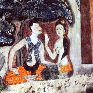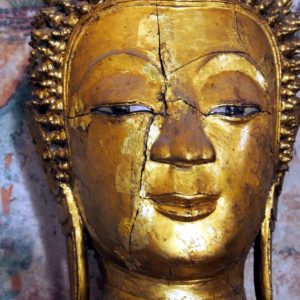 Náš peší hon na chrámy pokračuje a dostaneme sa na rázcestie. Naľavo je kráľovský palác s múzeom a napravo kopec so stúpou. Vyberáme zalesnený kopec, lebo keď bude cez obed slnko piecť, lepšie sa schováme v múzeu. Pod kopcom je malý chrámik bez vstupného s jedinečnými freskami. Na schodoch dohora predávajú malé klietočky s vtáčikmi, ktoré ľudia potom navrchu vypúštajú. Platíme vstupné (20000K/hlava). Jedna pani si položila vtáčiky na lavičku pri pokladni a kým sa vyzliekala tak jej doskákali skoro na okraj a išli padnúť. Pribehol som jej ich posunúť naspäť. Ona si to tiež všimla, ale bol som rýchlejší. Na kopci je fajný výhľad, z bočnej cestičky vidno aj obe rieky.