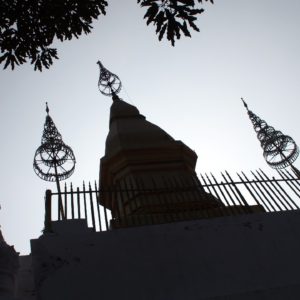 Do Luang Prabang prídeme neskoro, vykladajú nás na stanici asi 4km od cieľa. Ako sa tak pechrím sa vakmi a podávam ich ľudom vpredu nejako ma jeden preklopí a končím s rebrom na opierke. Až mi to dych vyrazí. A fajne to bolí. A ako tak poznám rebrá, ešte aj fajne dlho bude. Na ulici nevyzerá byť moc premávka, tak sa snažím sledovať situáciu a nie svoje reboro, aby nám neušiel posledný tuk tuk. Zhodneme sa s Čechmi, že ideme do ekonomickejšej štvrte, Holanďan sa ostrieľane pridáva ku väčšine, veď je sám a pojašení Austráčamia len sedia v buse a pozerajú do knižky. Hovoríme im o našom pláne ale oni stále nejako váhajú. Tak sa púšťame do debaty s tuktukármi, ktorí chcú nekresťanských 15000K na hlavu. Hovorím, že celý tuktuk by mal stáť 50000K. Nie je s nimi reč, tak sa nakladáme a ideme von. Chalanko sa za nami hneď rozbehne, že teda dobre, 10000K. Je neskoro, sú Vianoce, každý chce byť už tam, tak pritakáme. Chcú zaplatiť dopredu, čo by bolo veľmi vtipné, keby bolo menej hodín, teraz je to len trápny žart. Hovoríme, že zaplatíme keď nás tam zavezú a skúšame vysvetliť, kam vlastne chceme ísť. Cestu ešte pre istotu sledujem na GPS. Necháme sa vyložiť na začiatku striebrotepeckej štvrte, nech si to prebehneme a nájdeme niečo na spanie. Holanďan sa hneď odpojí, Česi si vyberú z bankomatu peniaze aby nám vrátili za tuktuk a chvíľu ešte spolu hľadáme ubytko. Všetko je plné alebo drahé, tak nám to chvíľu trvá, aj sa roztratíme. S K končíme v domácky vezerajúcom hoteli za 80000K s tým, že zostaneme dlhšie. Pánko začínal na 100k, potom sa zjednal na 90k.