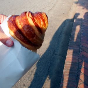Dnes si vo včerajšom podniku dáme to, čo sa tam má dávať, teda na čo sa špecializujú. A to je polievka. Veľká za 15000K. Je dobrá. Na posilnenie si ešte zoberieme so sebou bagetku. Je plnená mletým bravčovým. Chutí to ako škvarková pomazánka zmiešaná s paprikovou. Zabalia nám ju do celofánu a ten zaistia dvoma gumičkami. Celé to ide do neodmysliteľného mikroténového sáčku.