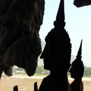 Vstupné do jaskyní je 20000K, dolná má dve „miestnosti“ plné Budhov. Po chodoch sa dostávame do hornej, tá je tmavá, hlbšia, nie je tam až tak veľa Budhov a na konci je úplná tma. Silne sa zíde vlastné svetlo. Vraciame sa tou istou cestou a dúfame, že nebudeme musieť znova platiť, keďže smerom sem nám kapi zobral lístky. Bez veľkých ceremónií nás ale naložia a len s nami dvoma idú naspäť. Do dediny prídeme bližšou cestou. Minieme mega reštauráciu, kde asi bývajú hromadné obedy ľudí dovezených loďami. Cesta naspäť ubieha rýchlejšie, zastavíme v dedinke špecializujúcej sa na Lao Lao whiskey, rôzne tvory ako hady, škorpióny sú naaranžované v sklených fľašiach rôznych veľkostí, niečo koštujeme, ale až tak nás to neberie. V reštike s pekným výhľadom na rieku, že skúsime nejakú rybu. Nakoniec si vyberieme jednu rybaciu polievku podľa odporúčania (40000K), lepkavú ryžu (sticky rice) a pivko. Donesú nám velikánsku misku polievky s rybacími časťami a ryžu v valcovitej nádobke pletenej z bambusu. Naberáme si vývar a rybie kusy a zajedáme to ryžou. Pláva tam polka hlavy – ľavá, so zubami ako suchý zips, chvost, kus mäsa a nejaký kus s plutvou. Je tam všade dosť mäsa, vývar je štipľavý ako čert, asi je tam tom yum. Ani ho nedojeme. Kosti ale oberieme do biela.