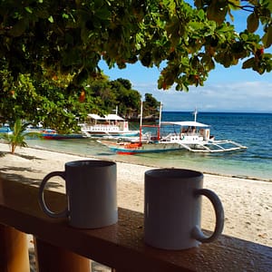 Aj keď ráno odchádzala loďka spred diveshopu teraz, keď sme už konečne hotoví nás posielajú na druhý koniec pláže. Šlapeme za Anglánmi, ktorí si tiež hľadajú loďku. Cestou nás odchytáva lodivod v smiešnej čiapke. Opäť sa opakuje scéna spred troch dní. Platíme P100 na hlavu a po pár minútach zbierajú P50 s tým, že je nás málo. A je nás fakt málo, iba 8. Šiesti z toho idú na minivan, tak sa chvíľu dohadujú a všetci doplácame. Naskočíme na malú loďku, ktorá vyzerá, že sa prekotí ak si niekto prdne. Pri prestupovaní na veľkú loď už vidím všetky vaky na dne mora, no nejakým zázrakom sa nevykotíme. Pikoška na záver, že za túto srdcervúci – nervy drásajúci transferík chcú nakoniec ešte platiť – P20 extra na hlavu.