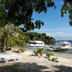 Aj keď ráno odchádzala loďka spred diveshopu teraz, keď sme už konečne hotoví nás posielajú na druhý koniec pláže. Šlapeme za Anglánmi, ktorí si tiež hľadajú loďku. Cestou nás odchytáva lodivod v smiešnej čiapke. Opäť sa opakuje scéna spred troch dní. Platíme P100 na hlavu a po pár minútach zbierajú P50 s tým, že je nás málo. A je nás fakt málo, iba 8. Šiesti z toho idú na minivan, tak sa chvíľu dohadujú a všetci doplácame. Naskočíme na malú loďku, ktorá vyzerá, že sa prekotí ak si niekto prdne. Pri prestupovaní na veľkú loď už vidím všetky vaky na dne mora, no nejakým zázrakom sa nevykotíme. Pikoška na záver, že za túto srdcervúci – nervy drásajúci transferík chcú nakoniec ešte platiť – P20 extra na hlavu.