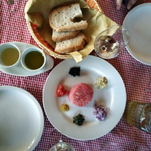 Pôvodne sme chceli ísť na obed do #1 na TA – talianskej reštiky na kopci, no po včerajšom írskom fiasku nechceme riskovať. Naštastie sú oba podniky vedľa seba a nakoniec víťazí oskúšaná Angelina. Pizza Angelina dnes príde veľmi rýchlo, lebo však už je čas obeda a pec na drevo je rozkúrená. Je výborne nakombinovaná a kým čakáme na čierne cestoviny kukáme na smiešne prešlachtené psy, čo sa obšmietajú po podniku.