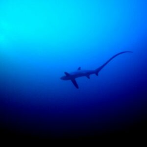Všetko sa zmení, keď okolo nás poprvýkrát majestátne preplachtí threhser shark (žralok líščí). Je to magický zážitok. Hlavne asi tým extrémne dlhým chvostom a kovovo lesklým finišom ale aj veľkosťou sú zaujímavejšie ako bežné útesáky.