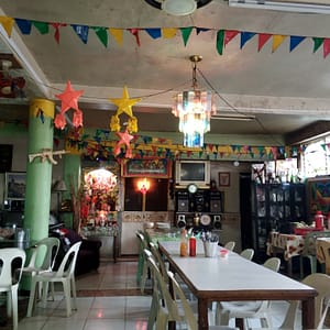Na raňajky ideme do zašlého podniku, kde okoloidúcemu kuchtíkovi zgrajchneme tri volské oká a k tomu jednu ryžu. Menežuje to tam starý tranvesťák, a tak nás ani neprekvapí, keď si vypýta dvojnásobnú cenu za vajcia oproti Siquijore (P70 vs P42). O čiernom čaji alebo Liptone ani tu nechyrovali. Kúpime si ešte predražené koláčiky s fialovým džemom a poďho na loď.