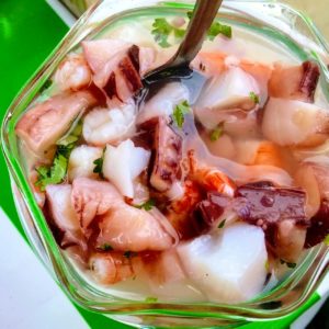 Na obed máme super chobotnicu v podniku oproti. Začali sme jesť ako domáci. Porcia nie je až taká veľká a nemá ani moc uhľohydrátov. Tie a objem príde z teplých tacos placiek. Človek si odreže primeraný kúsok z rybieho filé a vloží ho do placky, potom trocha šalátu, fazule a ryže. Celé sa to pokvapká štipľavkou a preloží alebo zroluje a je sa to tak.