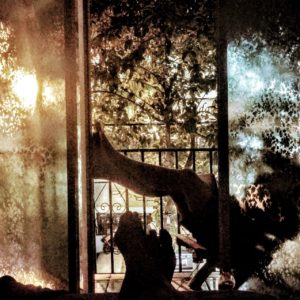 Úplne vedľa nás si prisadne párik s mokrou trávou. Skúšajú s nej aj niečo ubaliť, no nehorí im to. Chodia za nimi hipíci a oni im dokola vysvetľujú, že je to mokré a nehorí to.